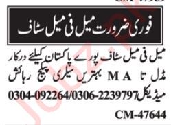 Apply as per details in job advertisement. Login to view further details of how to apply via https://www.jobz.pk online.
