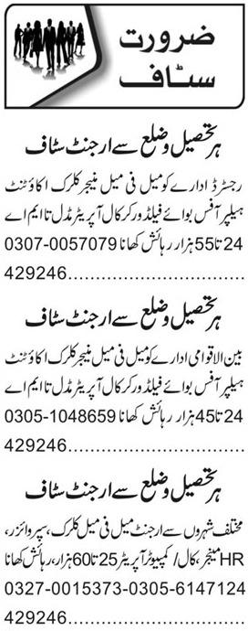 Private Company jobs advertisement dated about 1 August 2023 in daily Roznama 92 News Newspaper invites application for the vacant post of accountant, helper, computer operator, female clerk, office boy, call operator, clerk, supervisor, female manager, manager, hr manager and field worker in Multan, multan Punjab Pakistan. Matric, BBA, Middle, BA, B.com, Intermediate and Bachelor etc. educational qualification will be preferred.