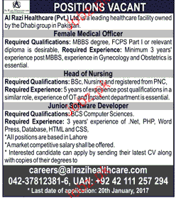 Female Medical Officers, Head Of Nursing Job Opportunity