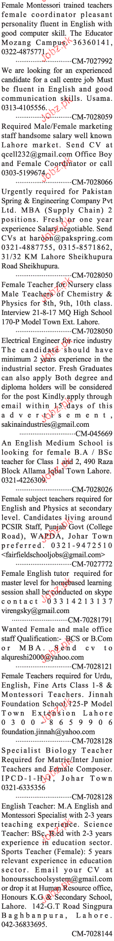 Latest Private Company Teaching Posts Lahore 2025
