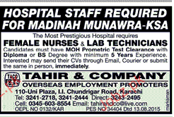Female Nurses and Lab Technicians Job Opportunity