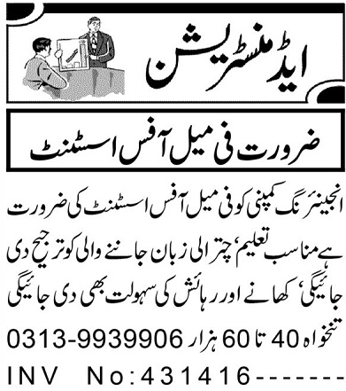 Engineering Company invites applications for job positions advertised in daily Aaj dated 28 May 2024 for following vacancies in Peshawar, peshawar Khyber Pakhtunkhwa KPK Pakistan.