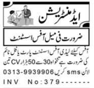 Female Office Assistant Jobs Open In Peshawar