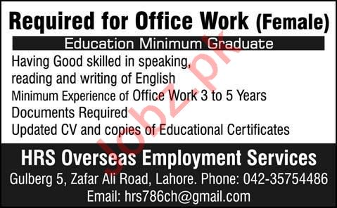 Latest HRS Overseas Employment Services Secretarial Posts Lahore 2025