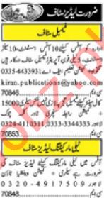 Apply as per details in job advertisement. Login to view further details of how to apply via https://www.jobz.pk online.