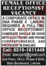 Private Office Lahore, lahore Punjab Pakistan invites applications from eligible candidates for the post of female office receptionist as per advertisement of December 11, 2022 published in daily Nawaiwaqt Newspaper. Educational qualifications required Bachelor etc.
