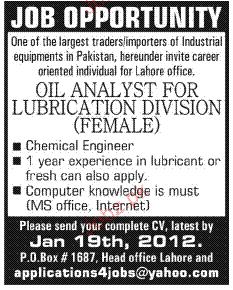 Female Oil Analyst For Lubrication Division Job Opportunity