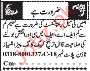Apply as per details in job advertisement. Login to view further details of how to apply via https://www.jobz.pk online.