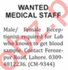 Female Receptionist & Lab Technologist Jobs 2020 In Lahore