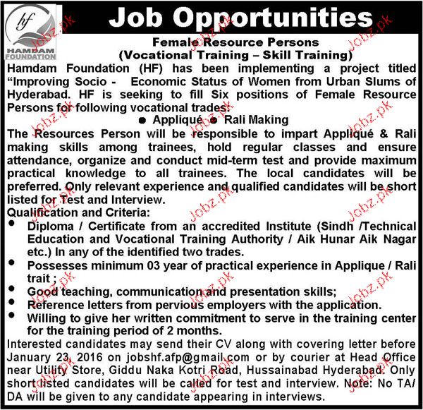 Apply as per details in job advertisement. Login to view further details of how to apply via https://www.jobz.pk online.