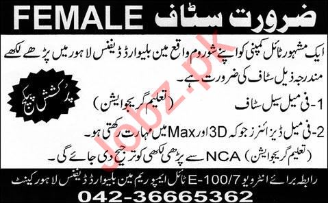 Female Sales Staff & Female Designer Jobs 2020 In Lahore
