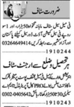 Intermediate, Middle, Master, Matric and Bachelor etc. educational qualification will be preferred.