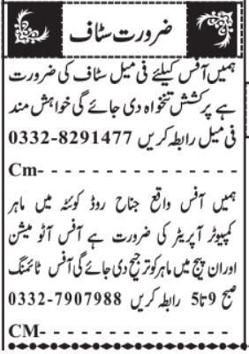 Female Staff & Computer Operator Jobs 2022 In Quetta