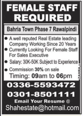 Private Company jobs advertisement dated about 26 June 2022 in daily Jang Newspaper invites application for the vacant post of female staff and office staff in Rawalpindi, rawalpindi Punjab Pakistan. Persons with Intermediate, Bachelor and Master etc. education can apply.