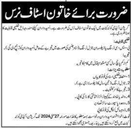 Female Staff Nurse Jobs At Garrison Academy Quetta