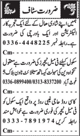 Private Company jobs advertisement dated about 10 August 2023 in daily Jang Newspaper invites application for the vacant post of cook, female teacher, electrician and teacher in Quetta, quetta Balochistan Pakistan. Candidates with Bachelor, Master, Middle and Matric etc. educational background will be preferred.