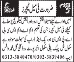 Private School invites applications for job positions advertised in daily Jang dated 22 February 2024 for following vacancies in Quetta, quetta Balochistan Pakistan.