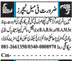 Female Teachers Job In Doctors Knowledge Secondary School