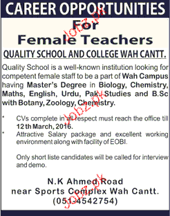 Latest Private Company Teaching Posts Wah Cantt 2025