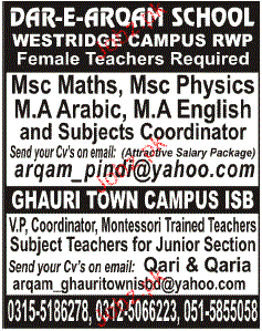 Female Teachers, Vice Principal Job In Dara Arqam School