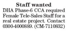 or as per paper ad