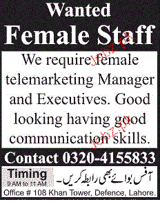 Female Telemarketing Manager Job Opportunity