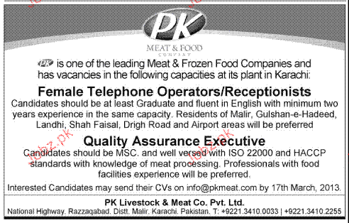 Latest Private Company Telephone Operator Posts Karachi 2025
