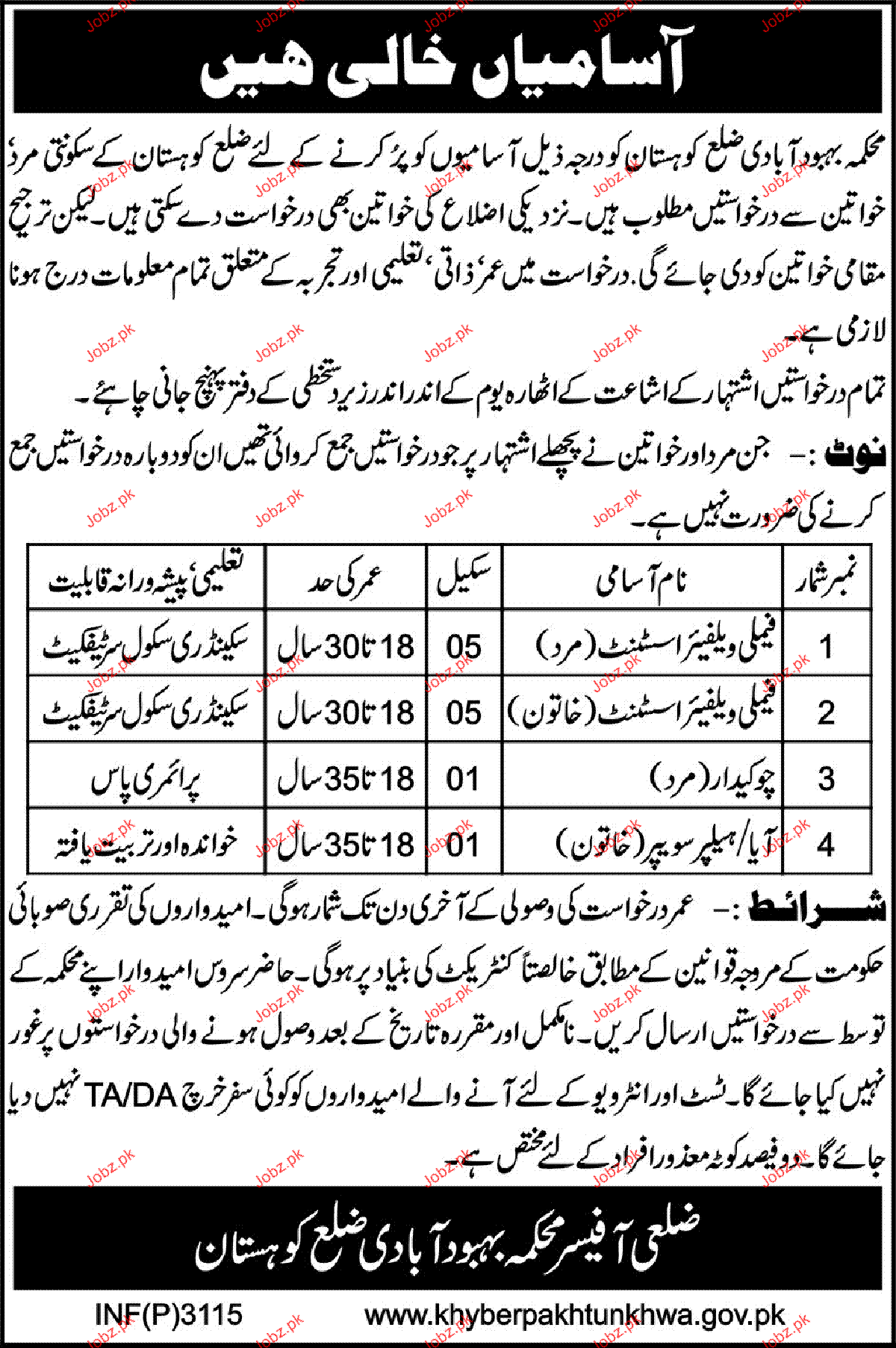 Female Welfare Assistants, Chawkidars Job Opportunity