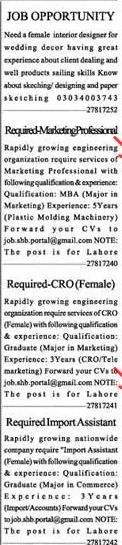Apply as per details in job advertisement. Login to view further details of how to apply via https://www.jobz.pk online.