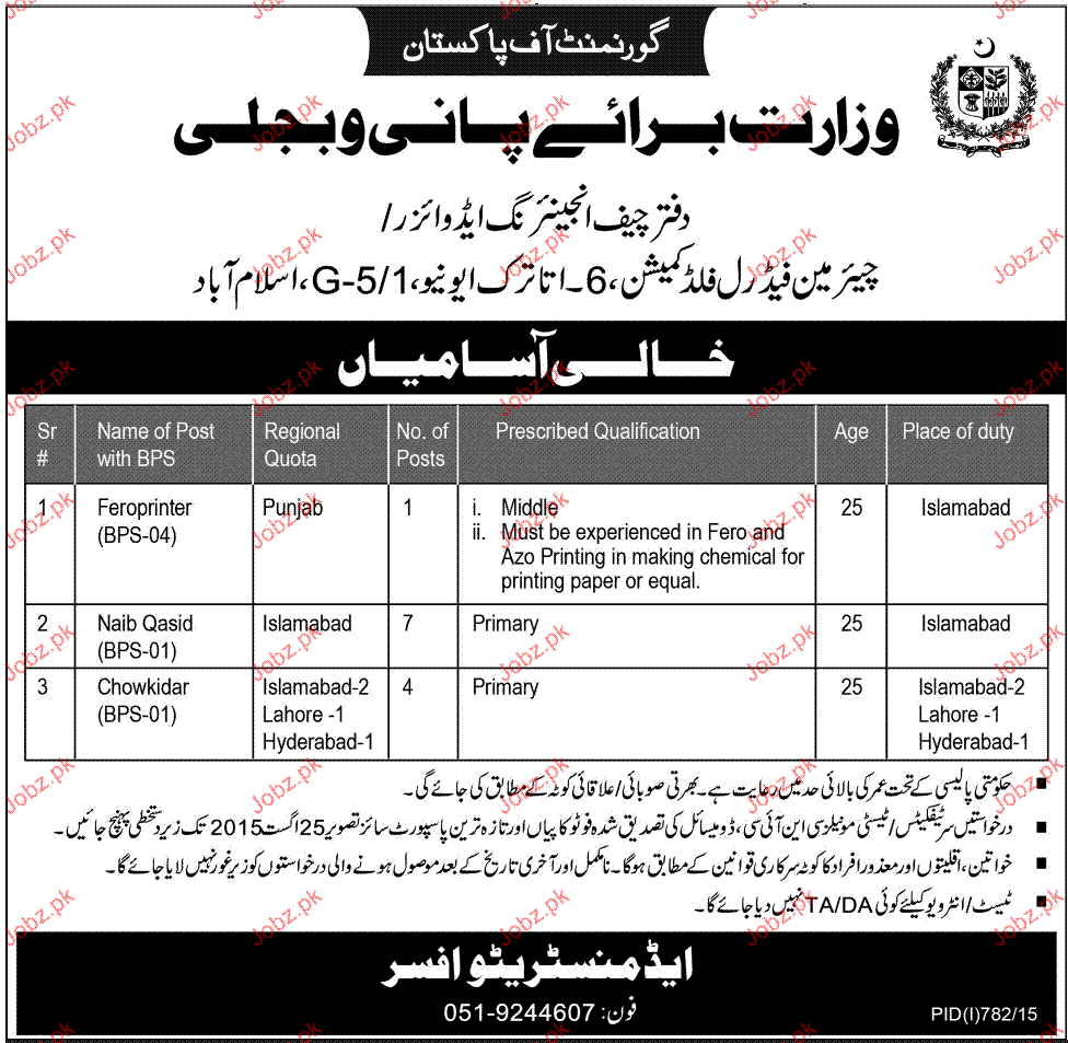 Apply as per details in job advertisement. Login to view further details of how to apply via https://www.jobz.pk online.