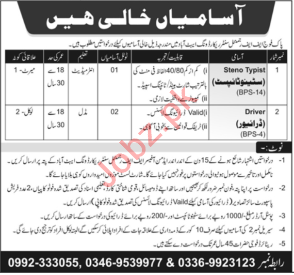 FF Regimental Center Record Wing Abbottabad Jobs 2020