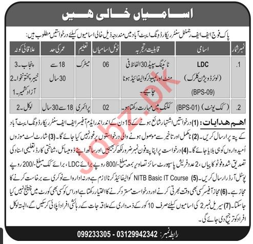 Vacancies in Pakistan Army FF Regimental Center Advertisement June 2021