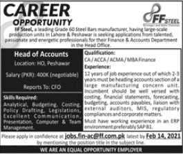 Latest FF Steel Manufacturing Industry Accounting Posts Peshawar 2025