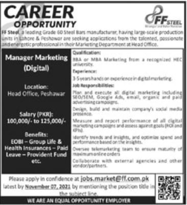 Latest FF Steel Manufacturing Industry Management Posts Peshawar 2025