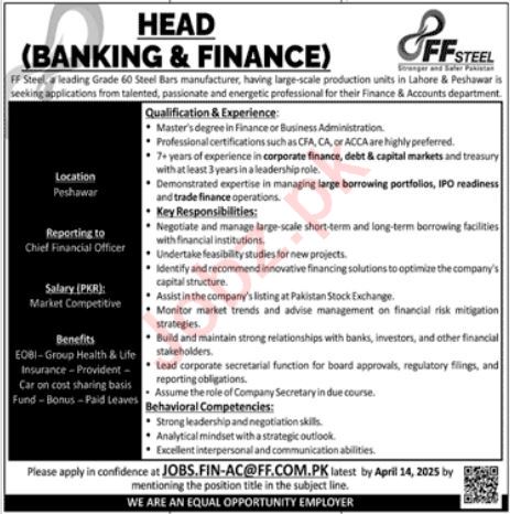 Vacancies in FF Steel Manufacturing Industry Advertisement April 2025