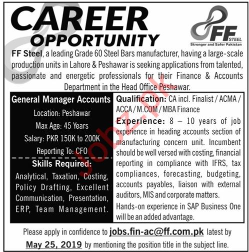 Vacancies in FF Steel Manufacturing Industry Advertisement May 2019