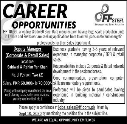 Latest FF Steel Manufacturing Industry Management Posts Sahiwal 2025