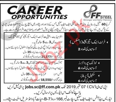Vacancies in FF Steel Manufacturing Industry Advertisement September 2019