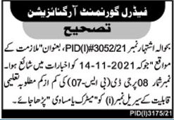 Vacancies in Federal Government Organization Advertisement November 2021