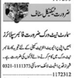 Internet Company Lahore, lahore Punjab Pakistan invites applications from eligible candidates for the post of fiber splicer as per advertisement of July 11, 2023 published in daily Dunya Newspaper. Persons with DAE, Bachelor and Intermediate etc. education can apply.