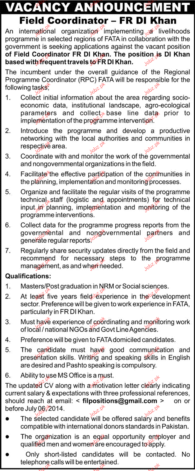 Apply as per details in job advertisement. Login to view further details of how to apply via https://www.jobz.pk online.