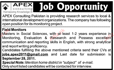 Apply as per details in job advertisement. Login to view further details of how to apply via https://www.jobz.pk online.