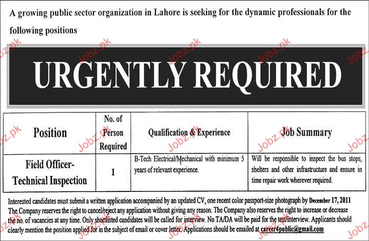 Apply as per details in job advertisement. Login to view further details of how to apply via https://www.jobz.pk online.
