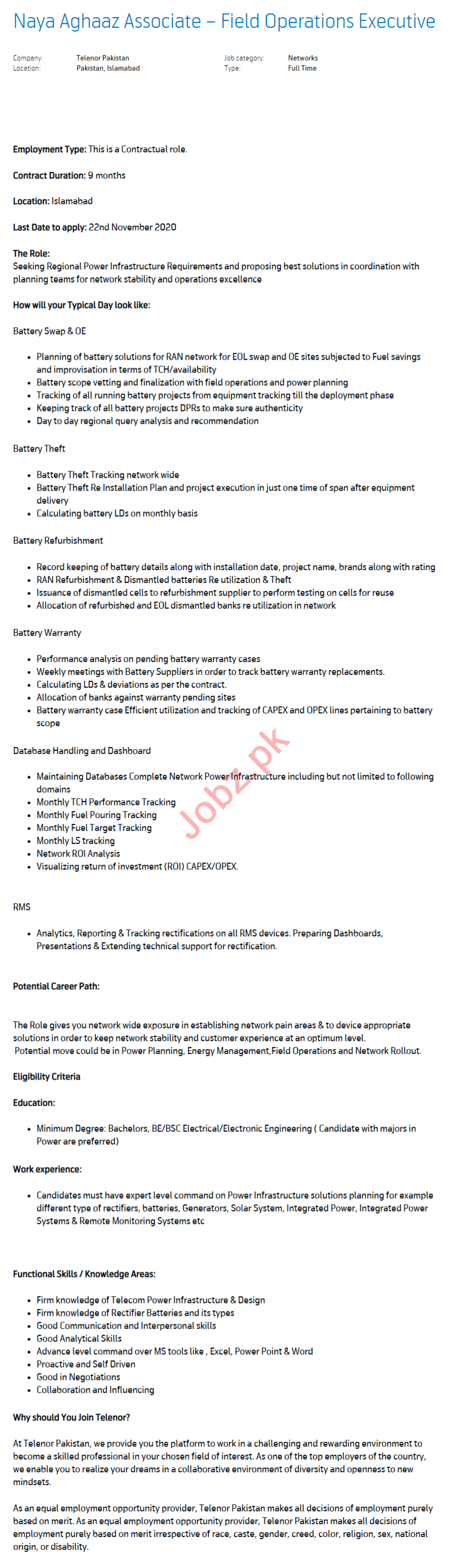 Vacancies in Telenor Pakistan Advertisement November 2020