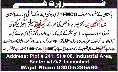 Latest Private Company Sales Posts Islamabad 2025