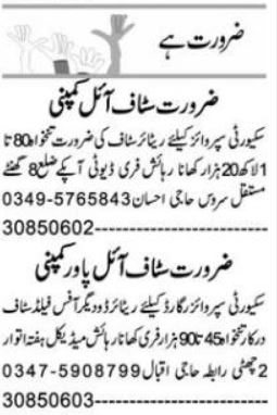 Private Company Faisalabad, faisalabad Punjab Pakistan invites applications from eligible candidates for the post of security guard, security supervisor, office staff and field staff as per advertisement of May 16, 2023 published in daily Express Newspaper. Educational qualifications required Intermediate, Matric, Middle and Bachelor etc.