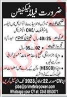 Private Company jobs advertisement dated about 9 July 2023 in daily Jang Newspaper invites application for the vacant post of field technician in Karachi, karachi Sindh Pakistan. Preferred Education is DAE and Matric etc.