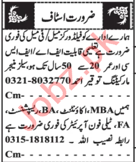 Apply as per details in job advertisement. Login to view further details of how to apply via https://www.jobz.pk online.