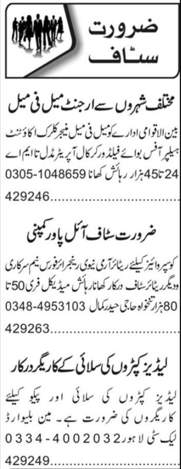 Latest Classifieds jobs in Private Company in Executive and others can be applied till 15 July 2023 or as per closing date in newspaper ad. Read complete ad online to know how to apply on latest Private Company job opportunities. Management, Field Sales, Security, Accounting and Account Management skills may beneficial for these Private Company jobs. Free medical, accommodation and food may be available.