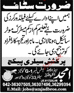 Apply as per details in job advertisement. Login to view further details of how to apply via https://www.jobz.pk online.